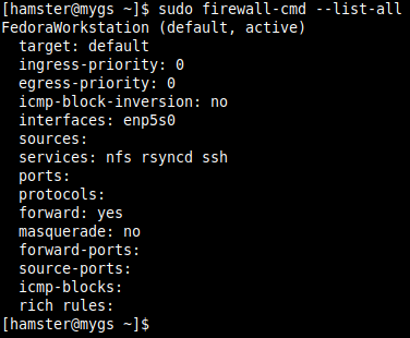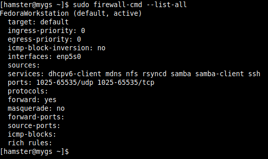 $ sudo firewall-cmd --list-all