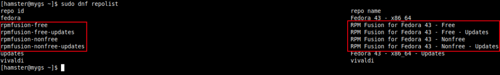 $ sudo dnf install -y rpmfusion-free-release-tainted