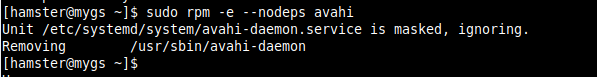 $ sudo rpm -e --nodeps avahi