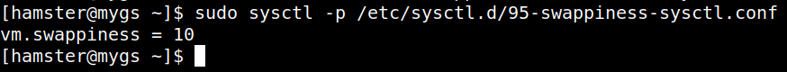 $ sudo sysctl -p /etc/sysctl.d/95-swappiness-sysctl.conf