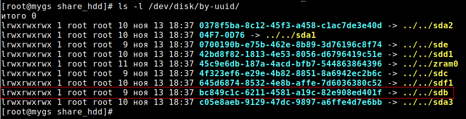 UUID=bc849c1c-6211-4581-a19c-82e908ed401f— диск, который мы монтируем./share_hdd/_sdb— каталог, в который монтируем диск.ext4— файловая система.defaults— стандартные опции.0 2— первый отключает создание резервных копий при помощи утилитыdump, второй (номер прохода) отключает проверку диска. fsck проверяет число, подставленное в поле (номер прохода) и решает, в каком порядке проверять файловую систему. Возможные значения0,1и2. Файловые системы со значениемномер прохода, равным0, не будут проверены утилитой fsck. У корневой системы должен быть наибольший приоритет,1, остальные файловые системы должны иметь приоритет2.