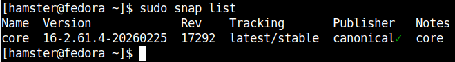 Эта команда позволяет вам подтвердить, что Snapd настроен надлежащим образом и функционирует в вашей системе Fedora.