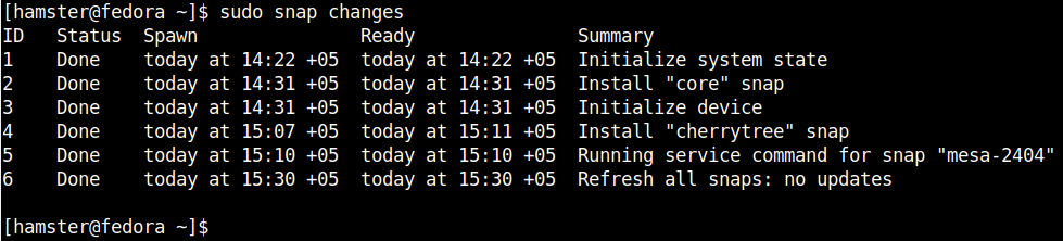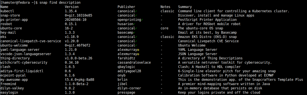 Теперь, когда Snapd успешно установлен в вашей системе Fedora, вы можете эффективно управлять приложениями с помощью командной строки.