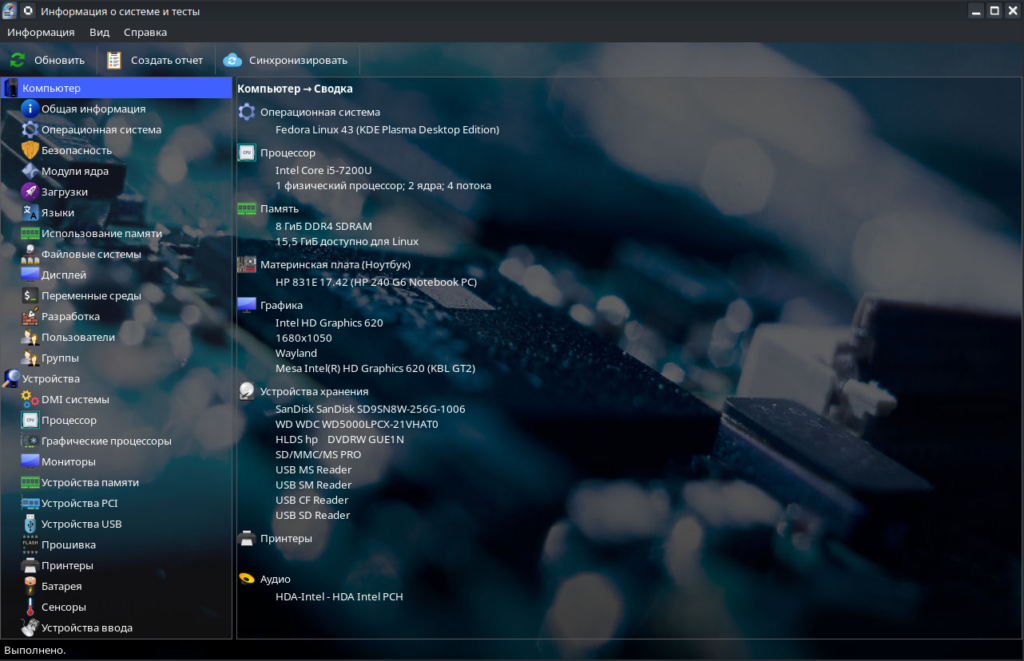 Hardinfo2. Отчеты о различных аппаратных компонентах.