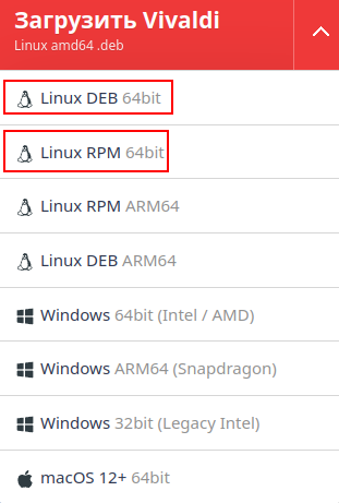 После загрузки соответствующего пакета для вашего дистрибутива используйте следующие команды (из каталога с сохранённым пакетом Vivaldi) для установки одного из наших GNU/Linux-пакетов непосредственно из консоли [здесь vivaldi* подразумевает автоматическую подстановку полного имени устанавливаемого пакета].