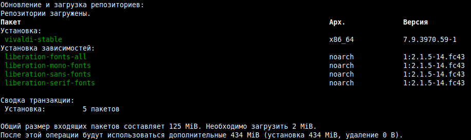 Установка Vivaldi из консоли.